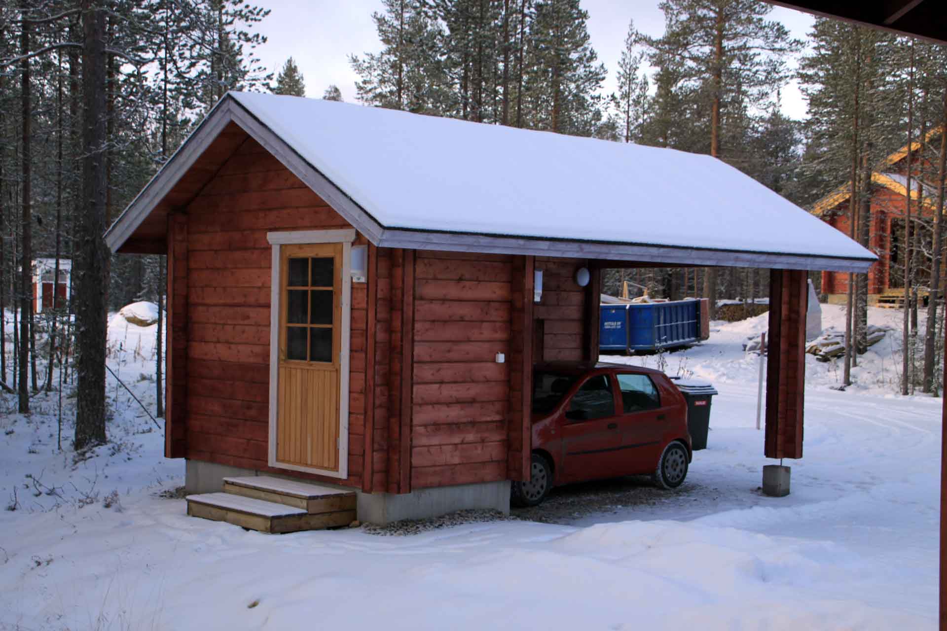Sähköpistoke autolle ja suksenhuoltohuone/varasto